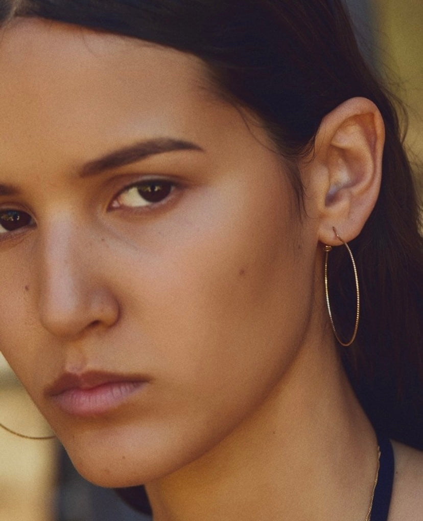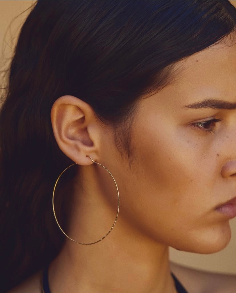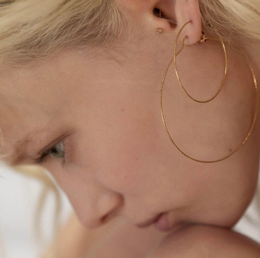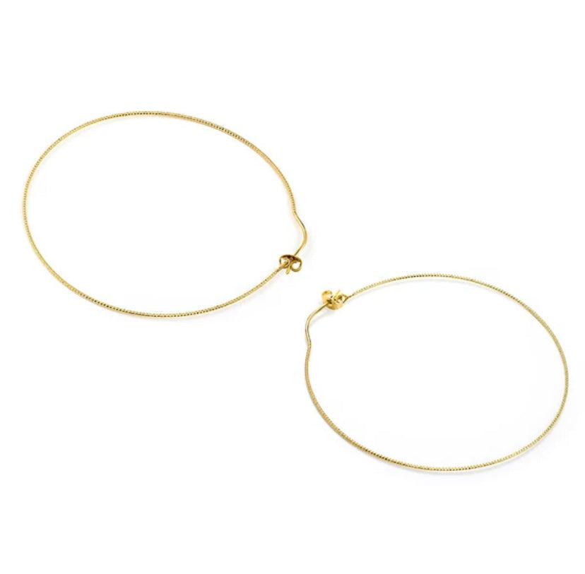 Grandes créoles Ode BDM Studio dorées à l'or fin 24 k. Diamètre : 6 cm.