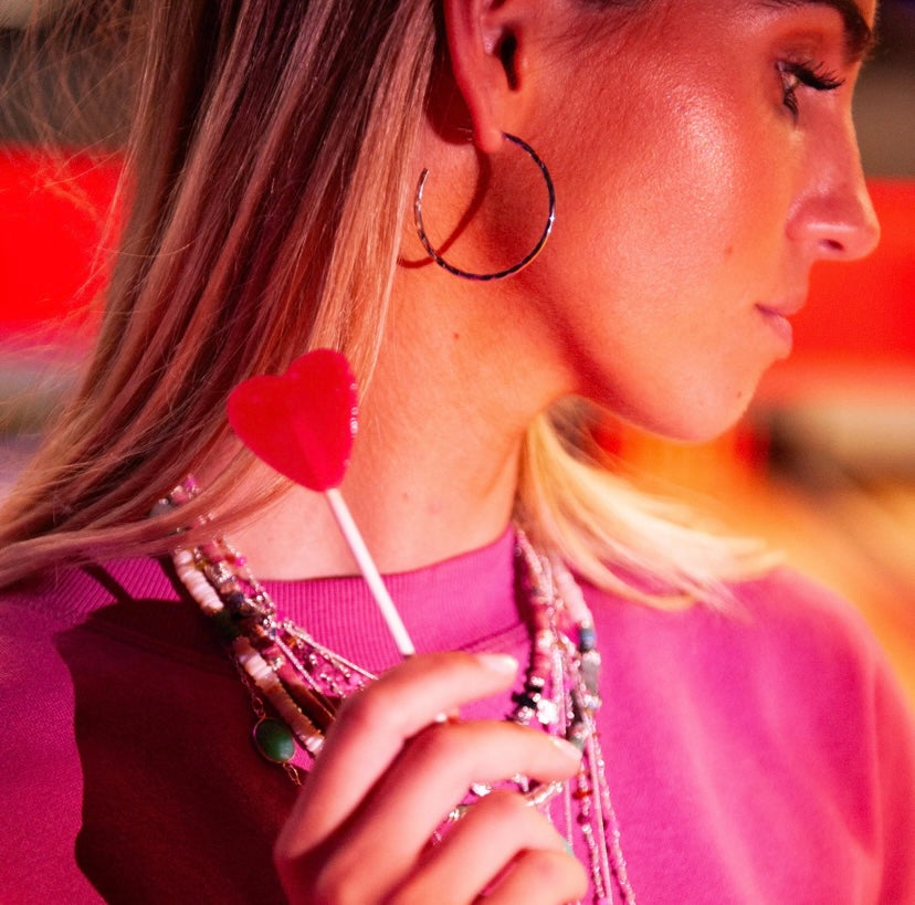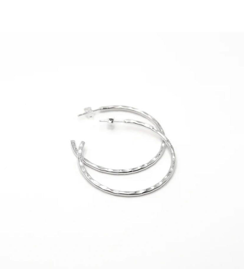 Créoles martelées Flora L'Atelier des Dames en argent 925. Diamètre : 4 cm.