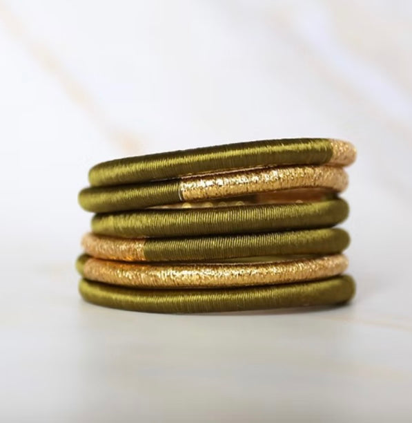 Jonc Dahabi de Maison Izel réalisé en fil de soie végétale, extraite de l'aloe vera de couleur dorée et lin sauvage, et tissé avec soin, selon les méthodes ancestrales de la passementerie marocaine, autour d'un jonc en caoutchouc.